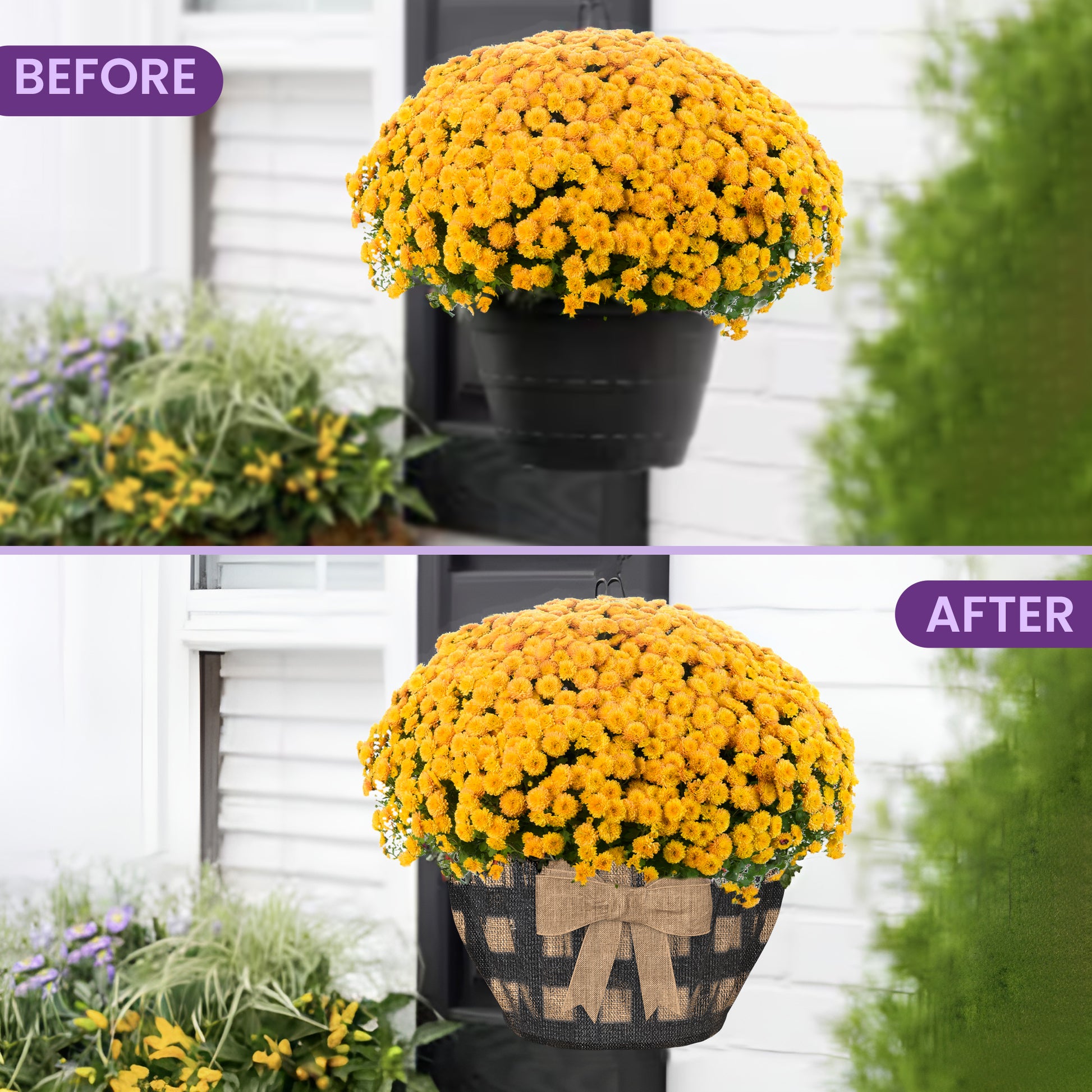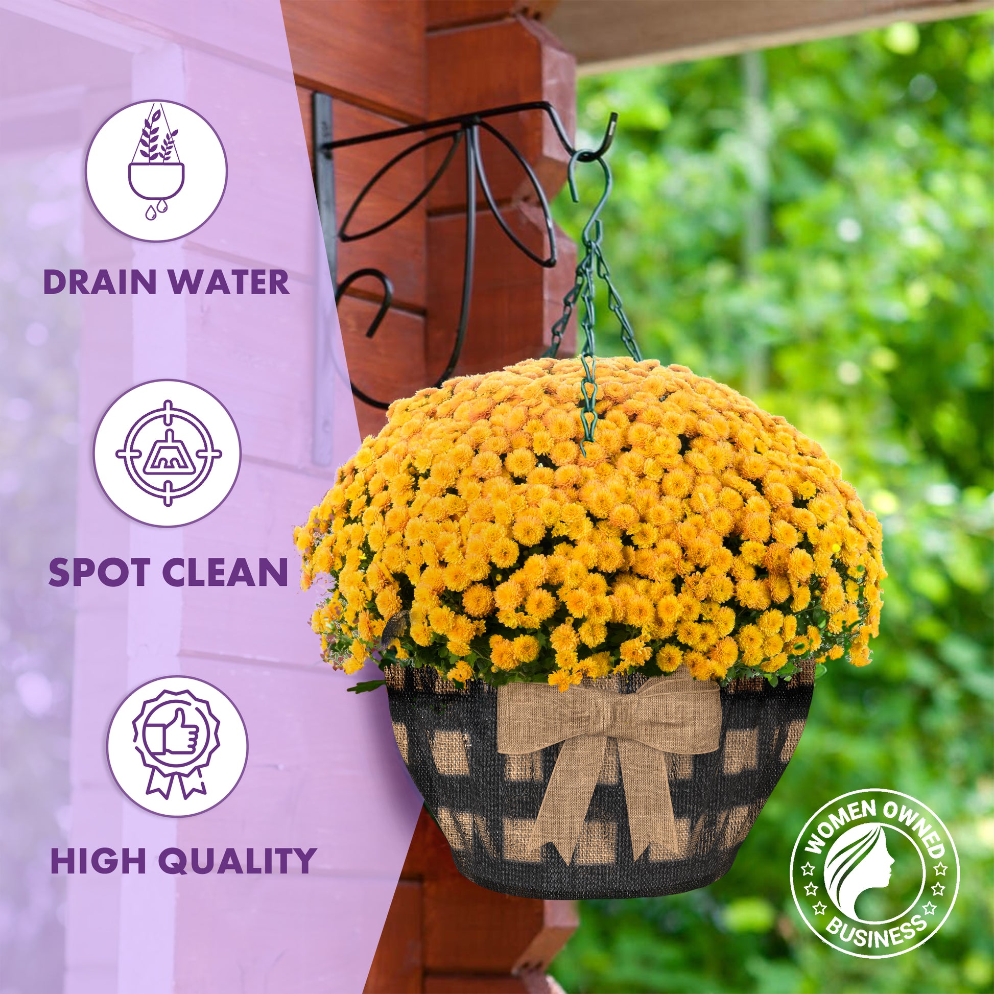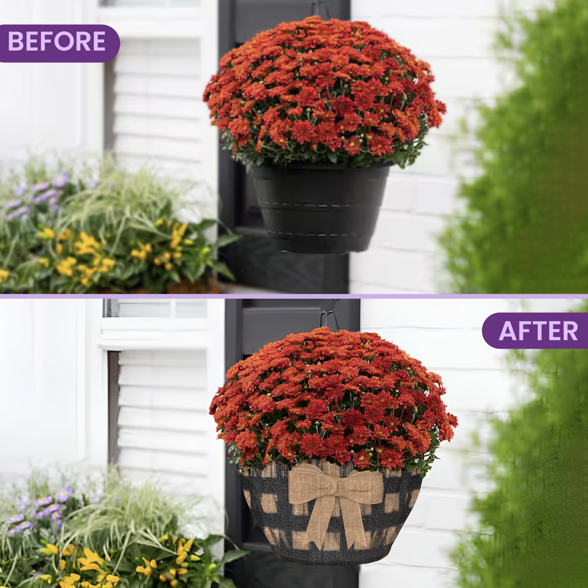 The Hanging Basket Jackets are made high-quality fabric and come in a variety of sizes and fabric choices. You simply pull the "jacket" over a hanging basket or flowerpot. Our beautiful hanging basket jackets enrich the look of a plain hanging basket or flowerpot.
