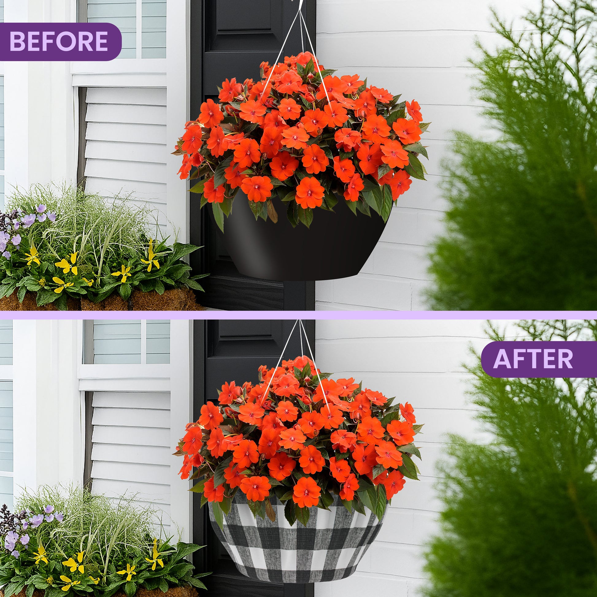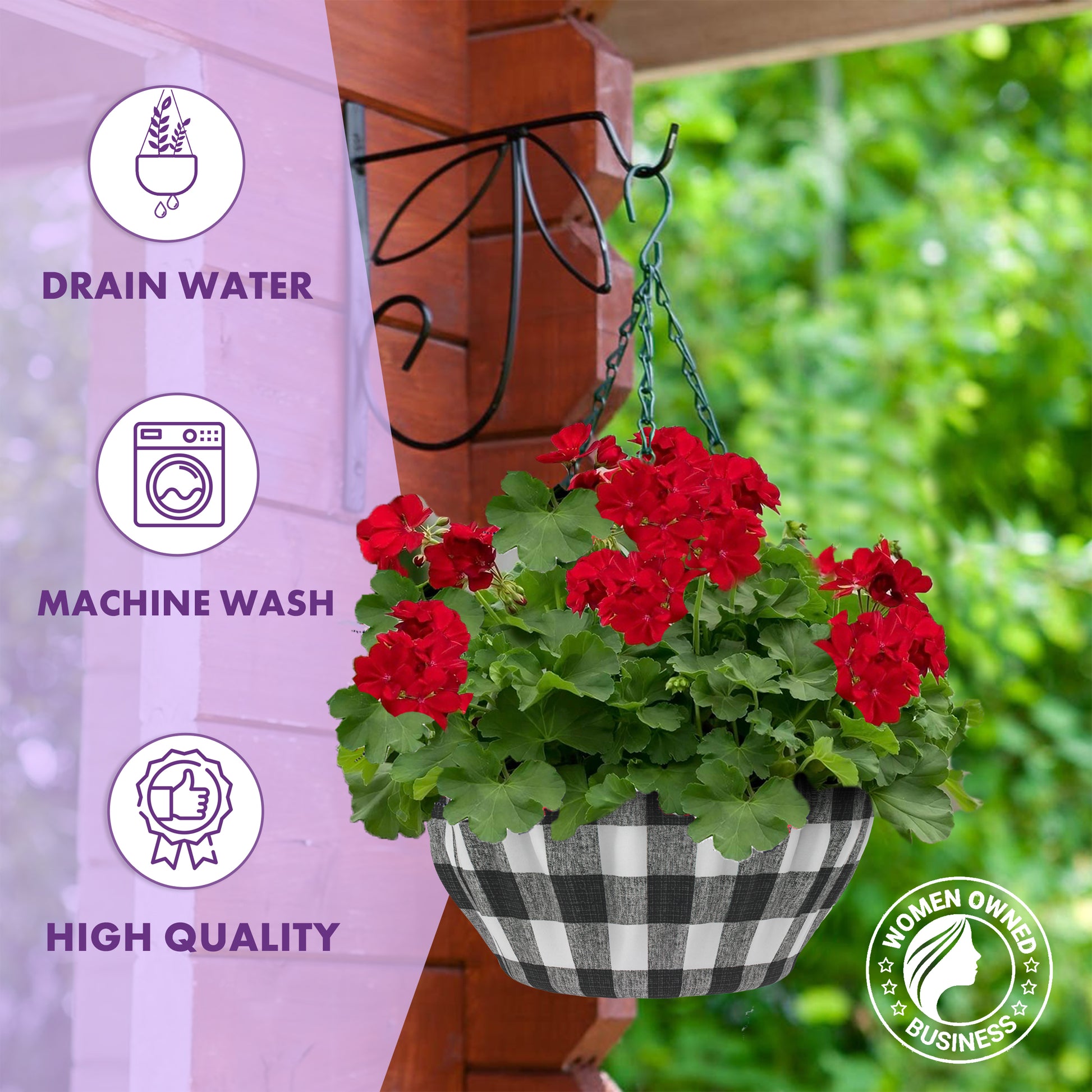 The Hanging Basket Jackets are made of high-quality fabric and come in a variety of sizes and fabric choices. You simply pull the "jacket" over a hanging basket or flowerpot. Our beautiful hanging basket jackets enrich the look of a plain hanging basket or flowerpot.